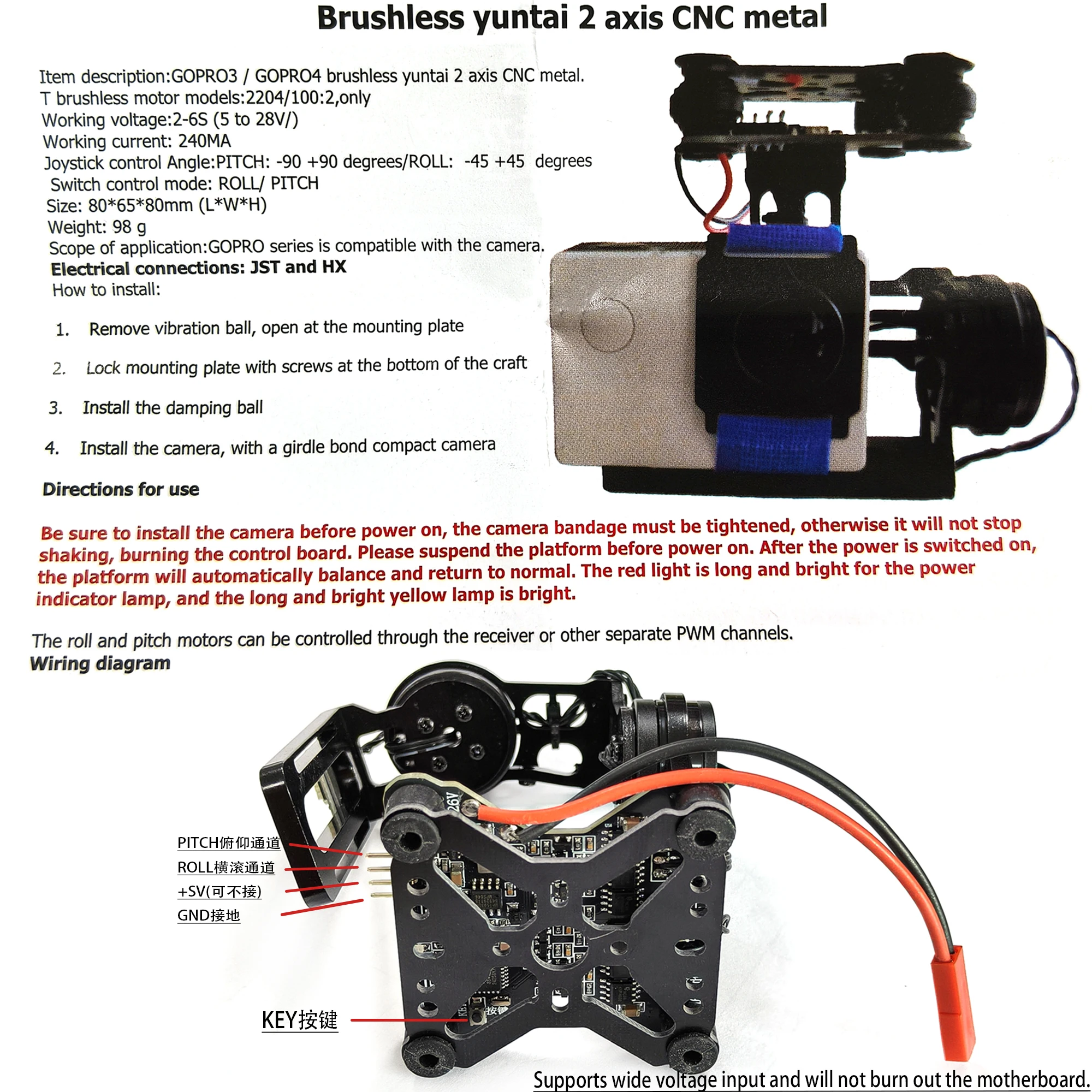 Gimbal size: 80 * 80 * 80MM (L * W * H)